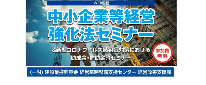 こんにちは!今日は「(一財)建設業振興基金 経営基盤整備支援センター」さんが無料で実施されている「中小企業等経営強化法セミナー」のご紹介です。