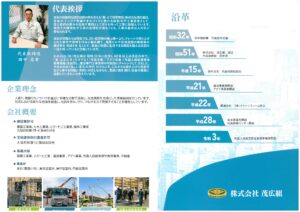 ㈱茂広組さんのポケットホルダーファイルは、長い歴史の中で建設専門工事業だけでなく、運輸業やアグリ事業等の様々な分野にも会社の事業を拡げ成功されていることを感じてもらえるように作成させて頂きました。歴史がありながら常に新しい事にもチャレンジする会社さんなので、その辺りをポケットホルダーファイルを通して感じてもらえると嬉しいなぁと思います。今回のポケットホルダーファイルもデザインを用紙いっぱいに作成してますので、下記の添付写真では文字が少し切れていたりしますが、現物はちゃんとできていますので機会がありましたら㈱茂広組さんで見てもらえると嬉しいです。また、とてもすてきな企業紹介パワーポイントデーターも作られてますので、関心のある方は本社事務所までお問い合わせくださいね!