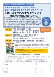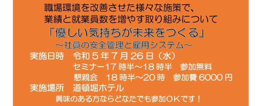 「優しい気持ちが未来をつくる~社員の安全管理と雇用システム~」セミナーとして下記の通りに実施させて頂きます!