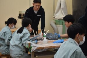 当法人「新入社員定着サポート事業」の一環として、当日も新入社員の子達に生徒さんのサポートをお願いしました。まだ2ヶ月しか経っていないのに、丁寧に生徒さんに教えてあげていたり、フォローをしてあげていたりして、昨年度の技能体験学習の時から新入社員研修等でずっと関わってきたスタッフや事務局としては、子供の成長の早さに感動する親御さんのように感無量な気持ちになりました。また、生徒さん達も新入社員の子達との交流の中で働くことを以前よりも真剣に考えるようになっていったように思います。施工体験学習終了後のお話の場では1限目からは考えられない程の質問が飛び交い、当法人の活動のことまで関心をもってもらうことができて嬉しい限りです。当日の詳しい内容やアンケート集計は下記の「報告書PDF」をご覧くださいね!