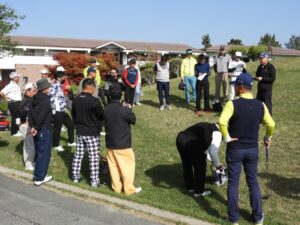 前の週まで土日の雨が多くて心配していたのですが、当日は良く晴れプレーしやすい気候でした。前回は32名の方がご参加頂きましたが、今回は36名の方がご参加くださり、どのチームも楽しくゴルフをプレーしていらっしゃいました。いつのもメンバーに新しい方が参加される感じになってきて、この親睦ゴルフコンペでのみお会いできる会員さんもいらっしゃっるので、役員さん達や事務局も楽しみなイベントとなってます。ゴルフコンペは普段と違い多くの会員さん達とゆっくりお話できる機会なので、ゴルフ中だけでなく休憩中でもとても楽しそうに交流されていました。