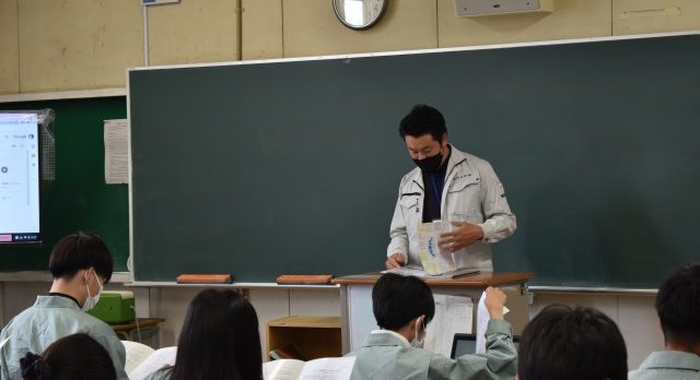 こんにちは!今日は当法人事業「職種説明・技能体験学習(タイル工事、左官+塗装工事)」(6月1日実施)についてのご報告です。当事業は「大阪府立東住吉総合高等学校」の住環境系列 2年生29名、3年生28名対象に実施させて頂きました。