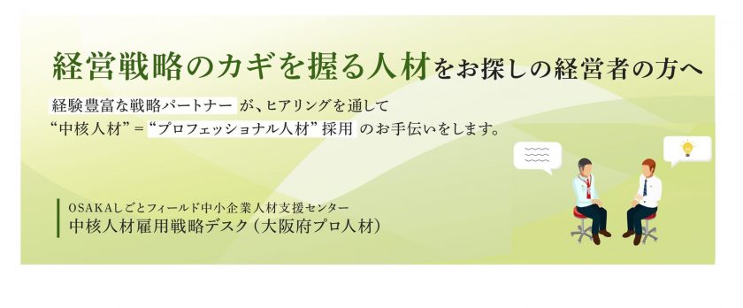 OSAKAしごとフィールド 中小企業人材支援センターさんでは、求職者の方と企業さんの双方をサポートする様々な事業を実施されています。企業さんの「長く働き続けてくれる人材と出会いたい」「自社の魅力を効果的にPRしたい」「若手社員の育て方を知りたい」「社員のスキルアップで自社の成長につなげたい」「企業主導型保育施設を利用したい」をできるだけ企業さんの望む形でかなえるべく日々活動されています。そのために、1.人材確保に関する相談窓口、2.企業向け採用支援セミナー・イベント、3.マッチング支援(企業交流会・企業説明会)、4.定着支援セミナー・研修、5.中核人材雇用戦略デスク等の無料・有料事業を実施されていますので、是非一度じっくりHPをご覧くださいね!