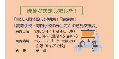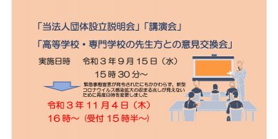こんにちは!今日は8月26日に当法人が実施させて頂く「高等学校・専門学校の先生方との意見交換」について、少しご説明をさせ…