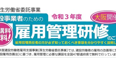 こんにちは。本年度も「建設事業者のための雇用管理研修」のご案内が届きましたのでご紹介させて頂きます。こちらの研修は受講料…