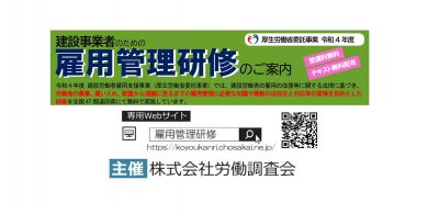 こんにちは。当法人HP10月21日の記事でご紹介させて頂いた、㈱労働調査会さんが実施される「建設事業者のための雇用管理研…