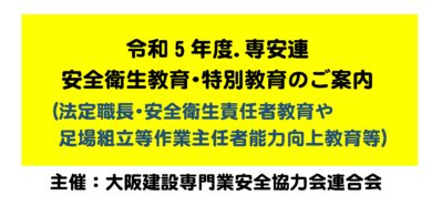 こんにちは!今日は「大阪建設専門業安全協力会連合会(専安連)」さんが実施されている「令和5年度.専安連 安全衛生教育・特…