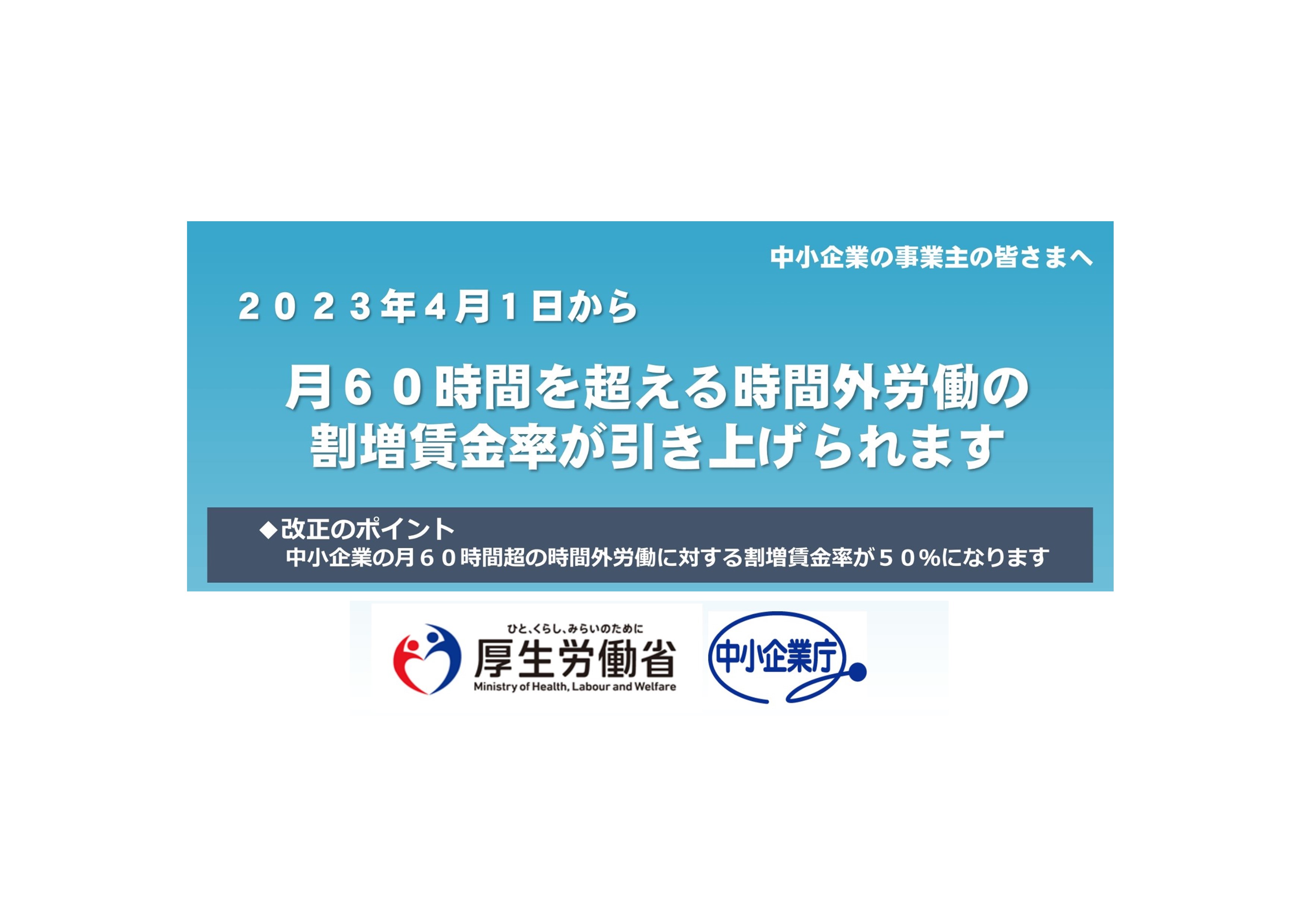 こんにちは!今日は来月4月1日から改定される、中小企業の従業員の方の月60時間を超える時間外労働の割増賃金率の引き上げに…