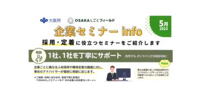こんにちは!今日は「OSAKAしごとフィールド」さんが5月に実施される雇用・定着に役立つセミナーのご紹介です。「…