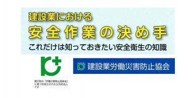 こんにちは!今日は「建設業労働災害防止協会」さんが発行されている「建設業における安全作業の決め手」のご紹介です。こちらの…